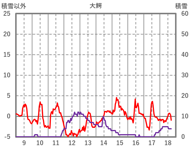 | 日 | 時 | 気温 | 降水 | 風向/風速 | 日照 | 積雪 | 降雪 |