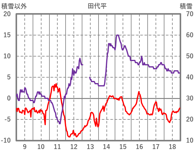 | 日 | 時 | 気温 | 降水 | 風向/風速 | 日照 | 積雪 | 降雪 |