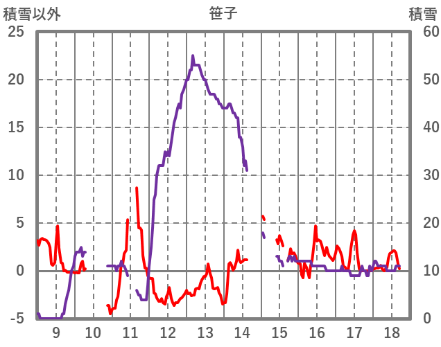 | 日 | 時 | 気温 | 降水 | 風向/風速 | 日照 | 積雪 | 降雪 |