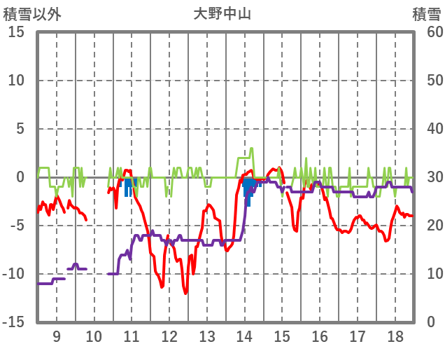 | 日 | 時 | 気温 | 降水 | 風向/風速 | 日照 | 積雪 | 降雪 |