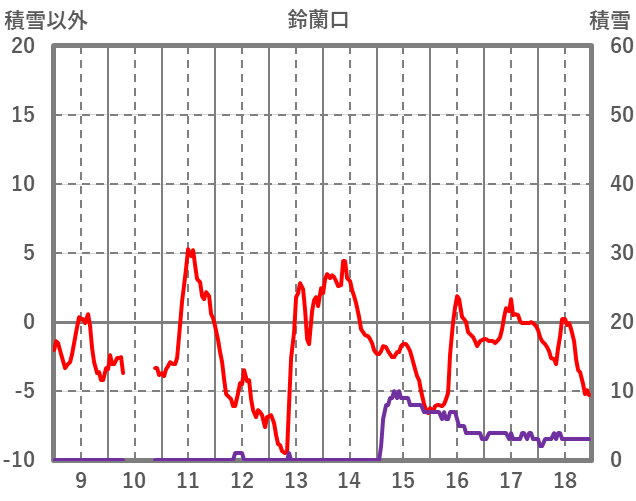 | 日 | 時 | 気温 | 降水 | 風向/風速 | 日照 | 積雪 | 降雪 |