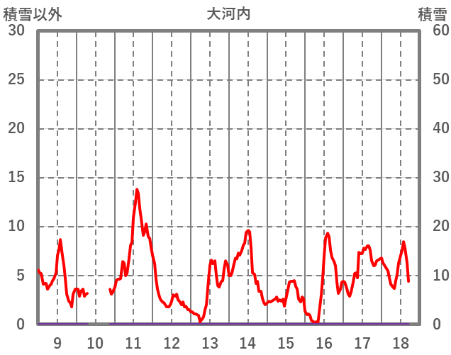 | 日 | 時 | 気温 | 降水 | 風向/風速 | 日照 | 積雪 | 降雪 |