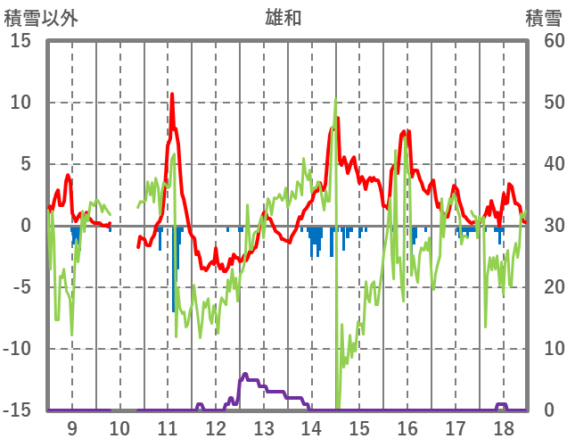 | 日 | 時 | 気温 | 降水 | 風向/風速 | 日照 | 積雪 | 降雪 |