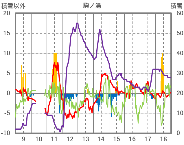 | 日 | 時 | 気温 | 降水 | 風向/風速 | 日照 | 積雪 | 降雪 |