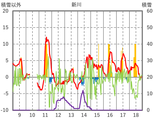 | 日 | 時 | 気温 | 降水 | 風向/風速 | 日照 | 積雪 | 降雪 |
