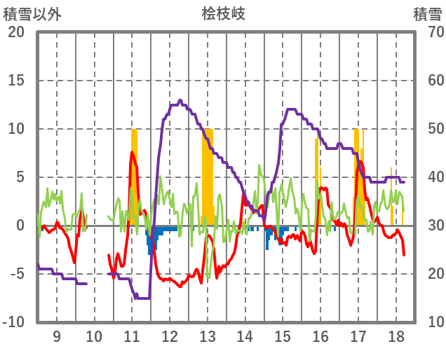 | 日 | 時 | 気温 | 降水 | 風向/風速 | 日照 | 積雪 | 降雪 |