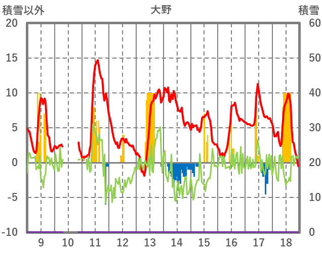 | 日 | 時 | 気温 | 降水 | 風向/風速 | 日照 | 積雪 | 降雪 |