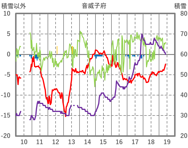 | 日 | 時 | 気温 | 降水 | 風向/風速 | 日照 | 積雪 | 降雪 |