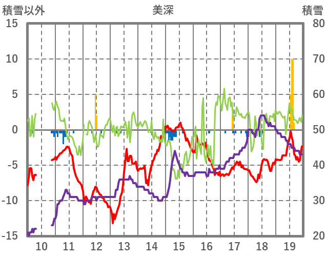 | 日 | 時 | 気温 | 降水 | 風向/風速 | 日照 | 積雪 | 降雪 |