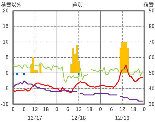 | 日 | 時 | 気温 | 降水 | 風向/風速 | 日照 | 積雪 | 降雪 |