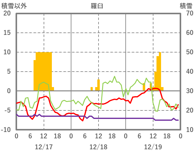| 日 | 時 | 気温 | 降水 | 風向/風速 | 日照 | 積雪 | 降雪 |