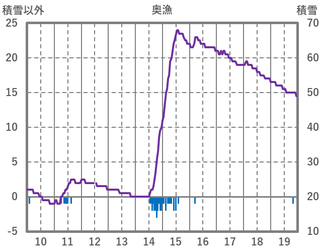| 日 | 時 | 気温 | 降水 | 風向/風速 | 日照 | 積雪 | 降雪 |