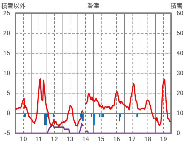 | 日 | 時 | 気温 | 降水 | 風向/風速 | 日照 | 積雪 | 降雪 |