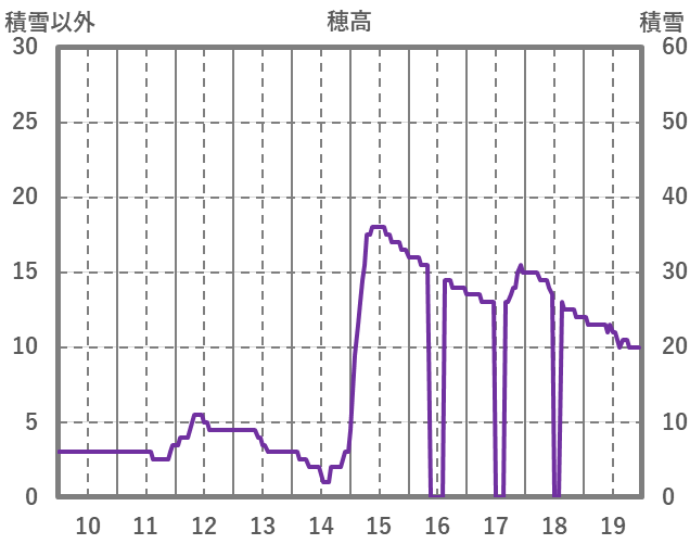 | 日 | 時 | 気温 | 降水 | 風向/風速 | 日照 | 積雪 | 降雪 |