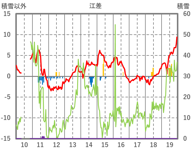 | 日 | 時 | 気温 | 降水 | 風向/風速 | 日照 | 積雪 | 降雪 |