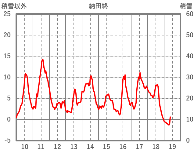 | 日 | 時 | 気温 | 降水 | 風向/風速 | 日照 | 積雪 | 降雪 |