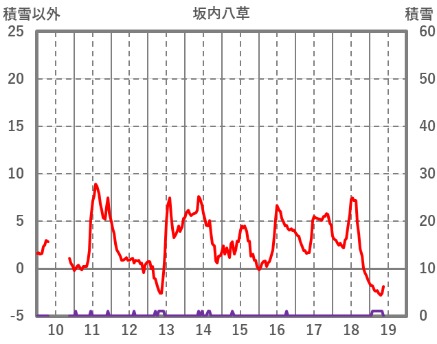| 日 | 時 | 気温 | 降水 | 風向/風速 | 日照 | 積雪 | 降雪 |