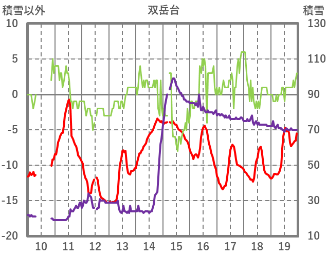 | 日 | 時 | 気温 | 降水 | 風向/風速 | 日照 | 積雪 | 降雪 |