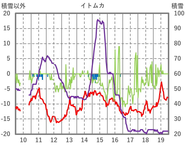 | 日 | 時 | 気温 | 降水 | 風向/風速 | 日照 | 積雪 | 降雪 |