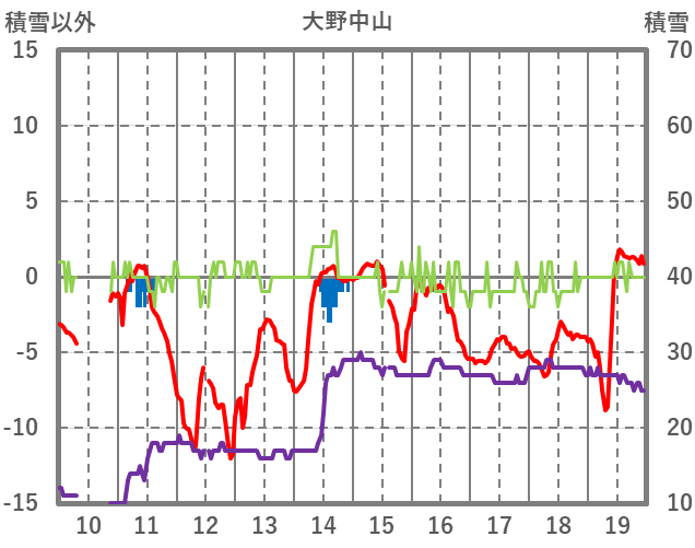 | 日 | 時 | 気温 | 降水 | 風向/風速 | 日照 | 積雪 | 降雪 |