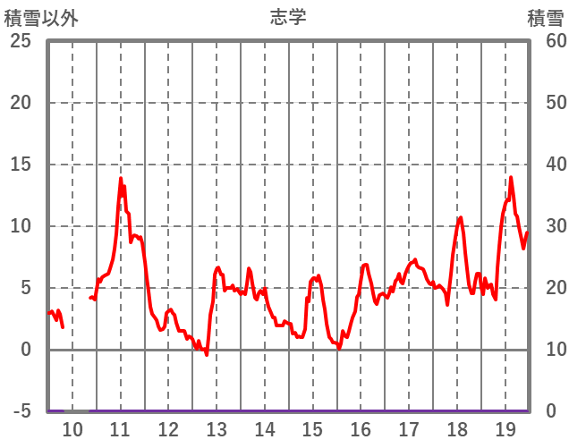| 日 | 時 | 気温 | 降水 | 風向/風速 | 日照 | 積雪 | 降雪 |