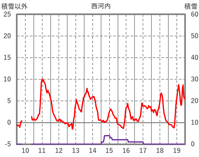 | 日 | 時 | 気温 | 降水 | 風向/風速 | 日照 | 積雪 | 降雪 |