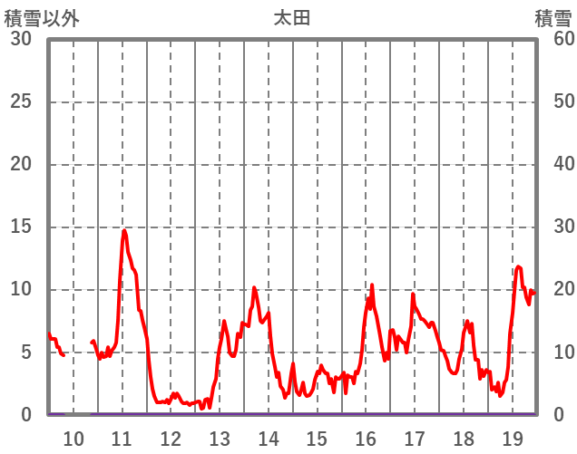 | 日 | 時 | 気温 | 降水 | 風向/風速 | 日照 | 積雪 | 降雪 |