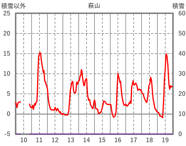 | 日 | 時 | 気温 | 降水 | 風向/風速 | 日照 | 積雪 | 降雪 |