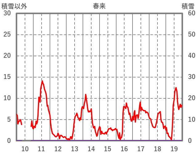 | 日 | 時 | 気温 | 降水 | 風向/風速 | 日照 | 積雪 | 降雪 |
