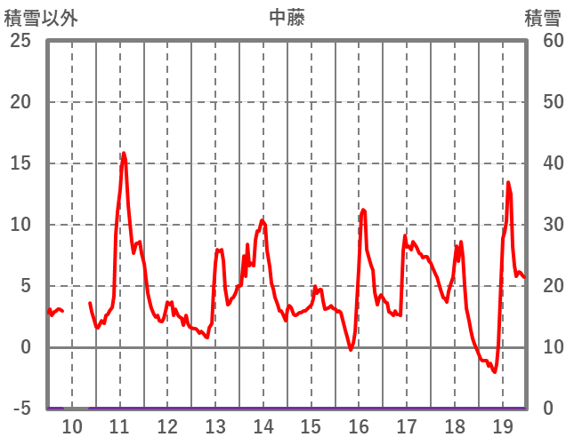| 日 | 時 | 気温 | 降水 | 風向/風速 | 日照 | 積雪 | 降雪 |