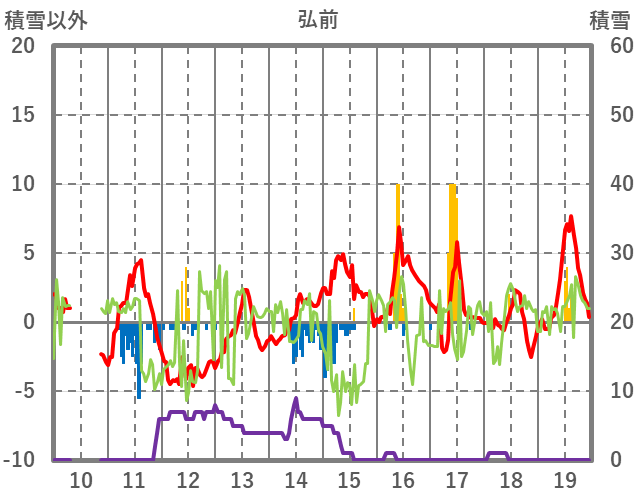 | 日 | 時 | 気温 | 降水 | 風向/風速 | 日照 | 積雪 | 降雪 |