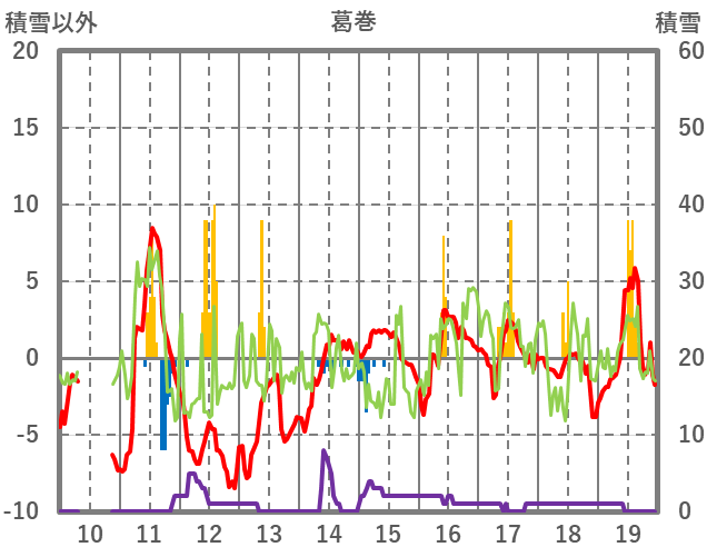 | 日 | 時 | 気温 | 降水 | 風向/風速 | 日照 | 積雪 | 降雪 |