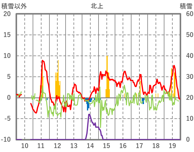 | 日 | 時 | 気温 | 降水 | 風向/風速 | 日照 | 積雪 | 降雪 |