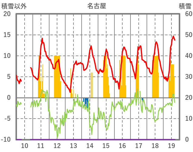 | 日 | 時 | 気温 | 降水 | 風向/風速 | 日照 | 積雪 | 降雪 |
