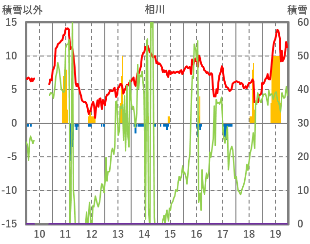| 日 | 時 | 気温 | 降水 | 風向/風速 | 日照 | 積雪 | 降雪 |