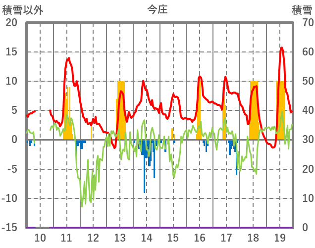 | 日 | 時 | 気温 | 降水 | 風向/風速 | 日照 | 積雪 | 降雪 |
