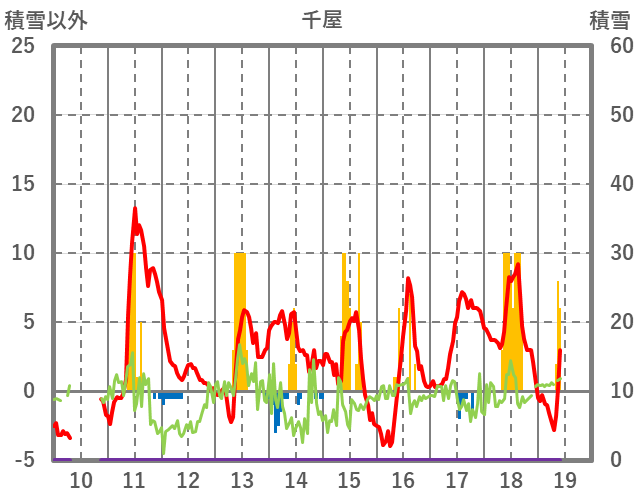 | 日 | 時 | 気温 | 降水 | 風向/風速 | 日照 | 積雪 | 降雪 |