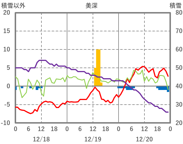 | 日 | 時 | 気温 | 降水 | 風向/風速 | 日照 | 積雪 | 降雪 |