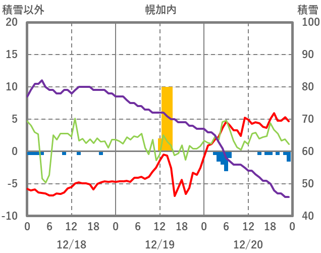 | 日 | 時 | 気温 | 降水 | 風向/風速 | 日照 | 積雪 | 降雪 |