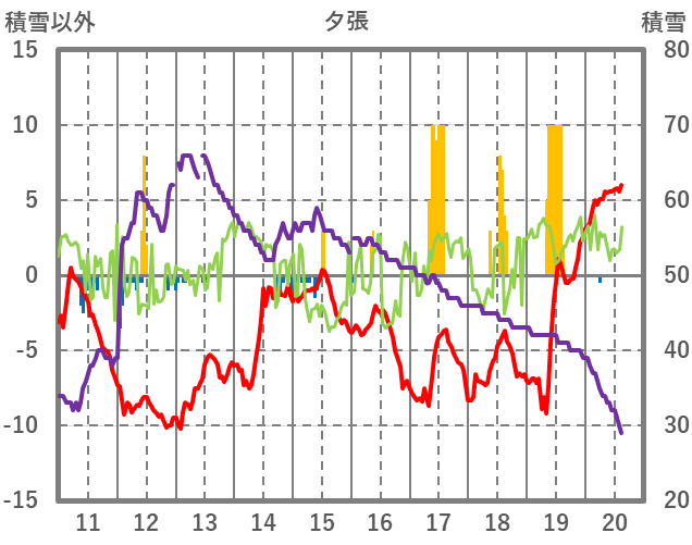 | 日 | 時 | 気温 | 降水 | 風向/風速 | 日照 | 積雪 | 降雪 |