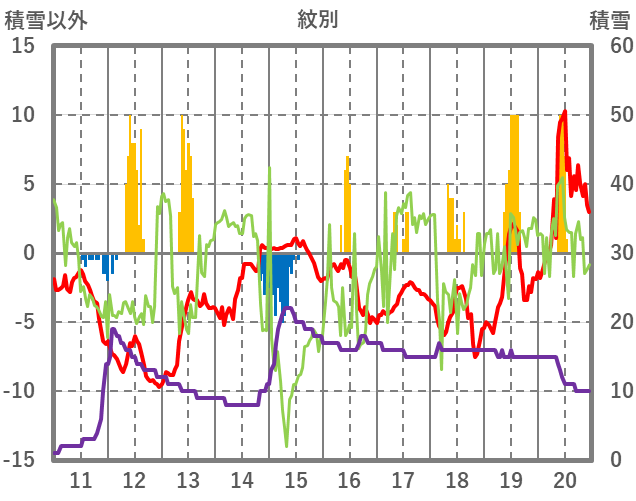 | 日 | 時 | 気温 | 降水 | 風向/風速 | 日照 | 積雪 | 降雪 |