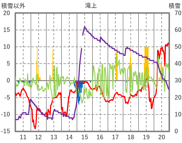 | 日 | 時 | 気温 | 降水 | 風向/風速 | 日照 | 積雪 | 降雪 |