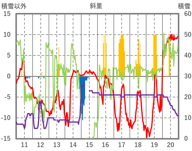 | 日 | 時 | 気温 | 降水 | 風向/風速 | 日照 | 積雪 | 降雪 |