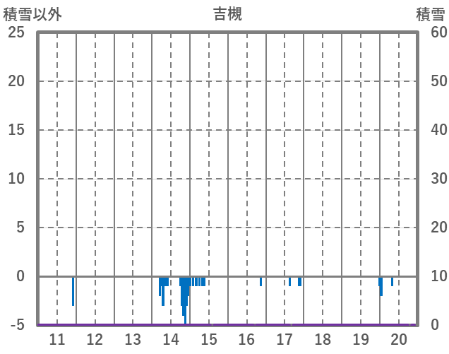 | 日 | 時 | 気温 | 降水 | 風向/風速 | 日照 | 積雪 | 降雪 |