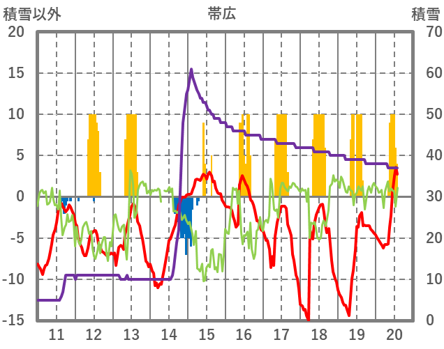 | 日 | 時 | 気温 | 降水 | 風向/風速 | 日照 | 積雪 | 降雪 |