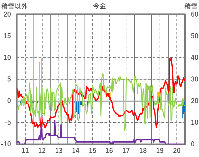 | 日 | 時 | 気温 | 降水 | 風向/風速 | 日照 | 積雪 | 降雪 |