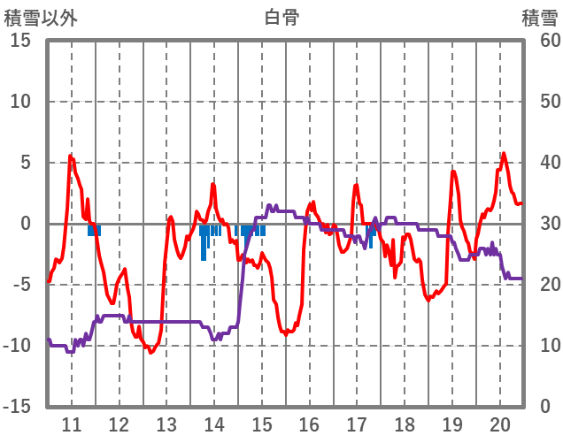 | 日 | 時 | 気温 | 降水 | 風向/風速 | 日照 | 積雪 | 降雪 |