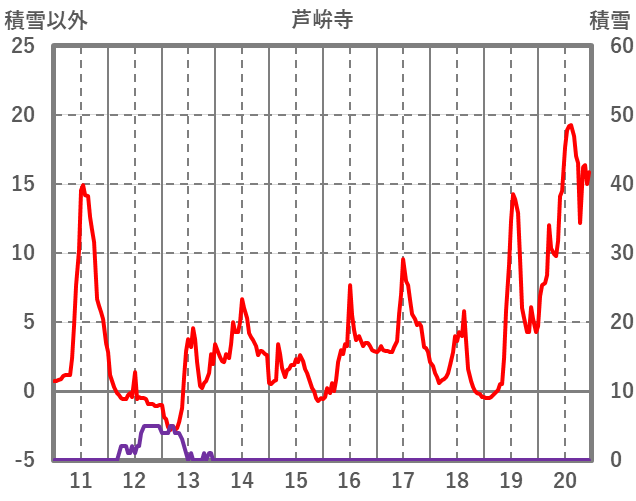 | 日 | 時 | 気温 | 降水 | 風向/風速 | 日照 | 積雪 | 降雪 |