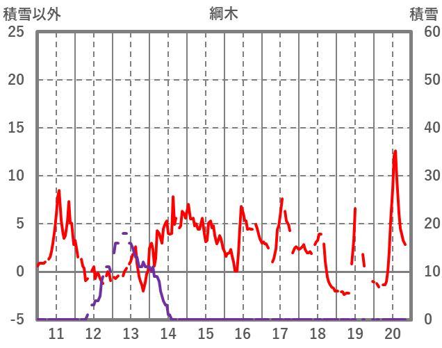 | 日 | 時 | 気温 | 降水 | 風向/風速 | 日照 | 積雪 | 降雪 |