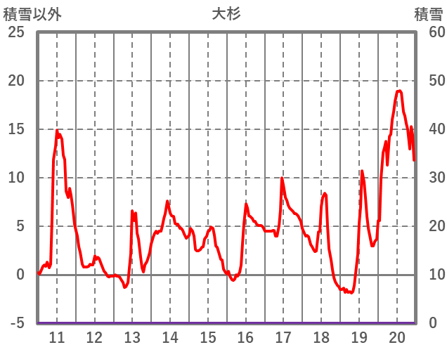 | 日 | 時 | 気温 | 降水 | 風向/風速 | 日照 | 積雪 | 降雪 |